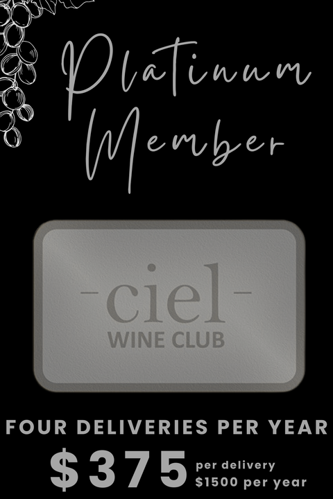 This membership package includes a mixed 6 bottle case of Ciel wines delivered to your doorstep each quarter. Each delivery is guaranteed to have over $425 worth of Ciel wines and will include a selection of wines from each of our Estate, Icon and Cloud Series.